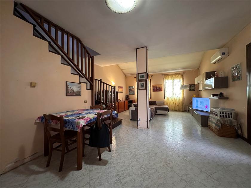 San Donà di Piave, loc. Passarella, proponiamo casa singola con ampio scoperto di proprietà. L’immobile si sviluppa su due livelli così composti: ingresso su spazioso soggiorno esposto a sud di circa 38 mq., cucina abitabile dotata di accesso diretto allo scoperto e comodo bagno con doccia al piano terra; camera matrimoniale, camera singola, zona studio dotata di lucernaio e bagno con vasca e doccia al piano primo. Completano l’offerta: serramenti con vetrocamera, impianto fotovoltaico, caldaia con accumulo e condizionatore. L’unità si presenta come ottima base per un aggiornamento pur essendo attualmente abitabile. Restiamo a disposizione per ulteriori informazioni.