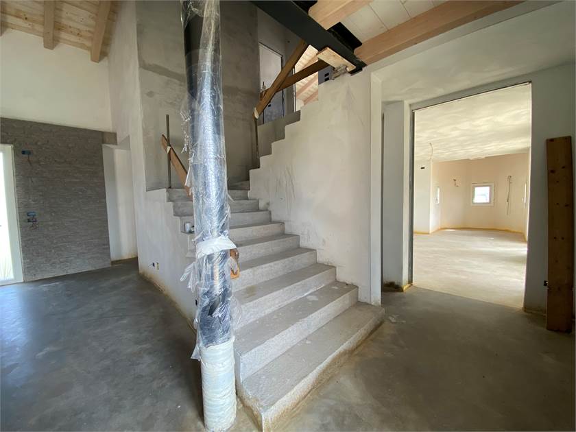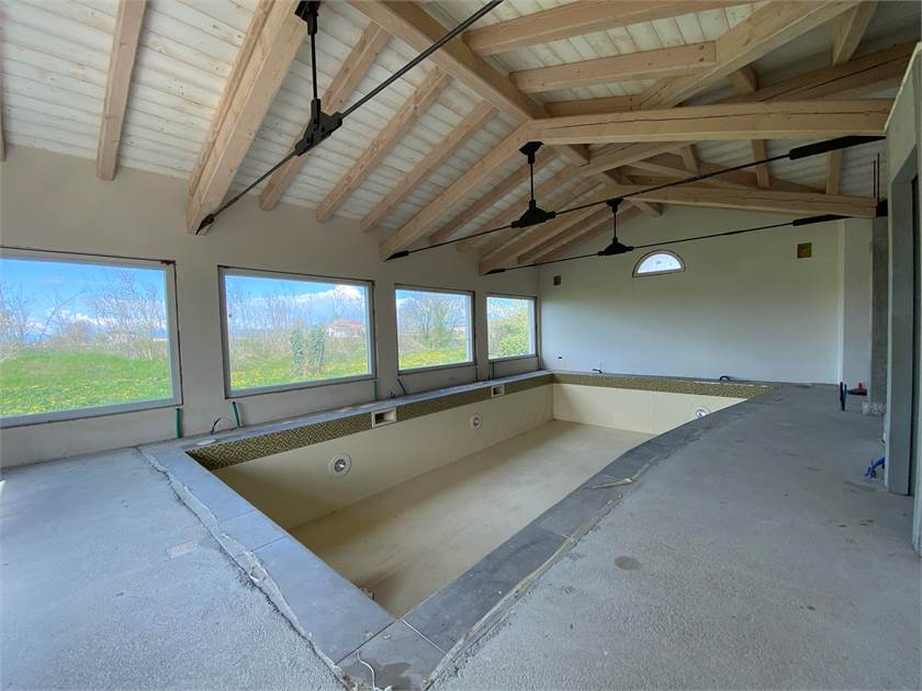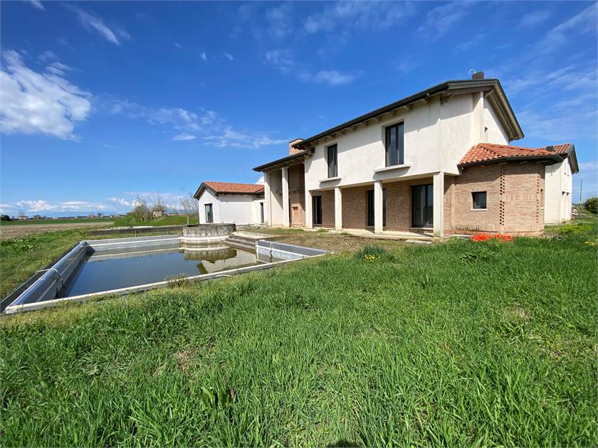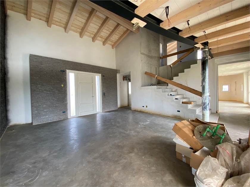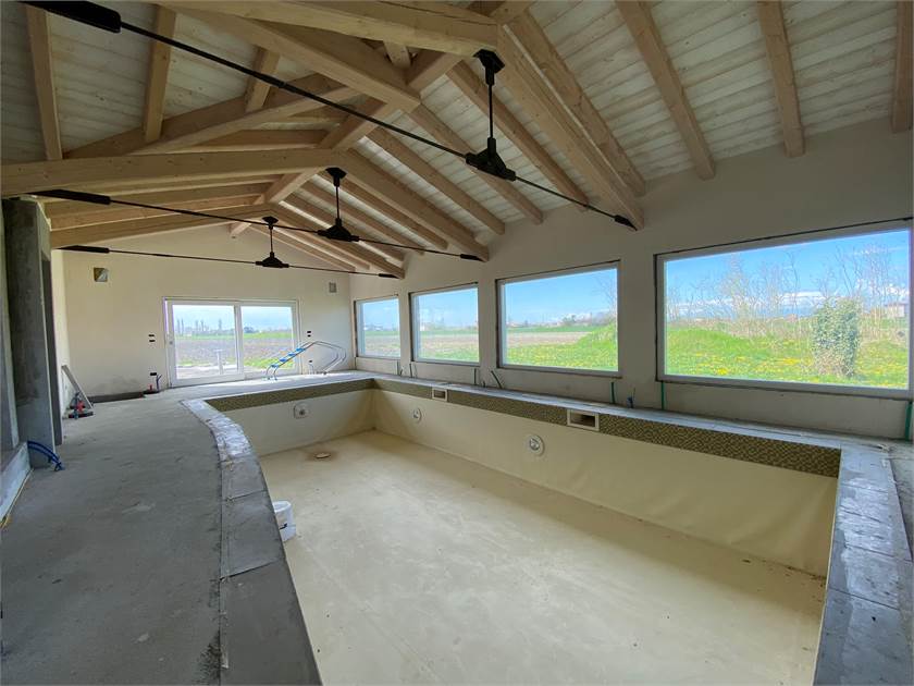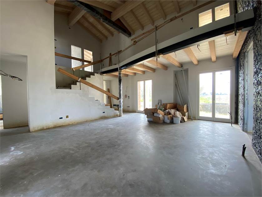 Immersa nella tranquillità della campagna ma a pochi chilometri dal centro di San Donà di Piave, proponiamo una splendida villa singola con annessa dependance circondata da terreno piantumato di circa 10.000 mq. La struttura si presenta nello stato di grezzo avanzato ed è caratterizzata da finiture di lusso come i marmi pregiati sui davanzali, serramenti di altissima qualità rivestiti esternamente in bronzo e impianto di domotica per il massimo comfort abitativo. Il corpo principale si sviluppa su due piani così composti: ampia zona living a tutta altezza vista giardino dotato di piscina/idromassaggio, cucina abitabile con camino alla Valesana, comoda dispensa, bagno con annessa lavanderia, bagno di servizio, cantina e magnifica zona relax dotata di piscina interna, bagno turco e doccia emozionale al piano terra; tre camere da letto di cui una padronale con bagno privato, ulteriore bagno di servizio al piano e soppalco con vista sul soggiorno al piano primo. La proprietà viene completata da una dependance con garage doppio e un appartamento di circa 50 mq. al piano primo con accesso indipendente. Per maggiori informazioni siamo a completa disposizione.